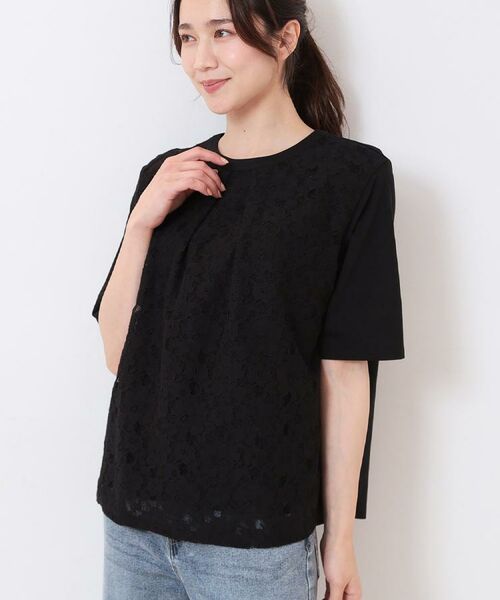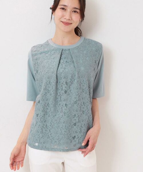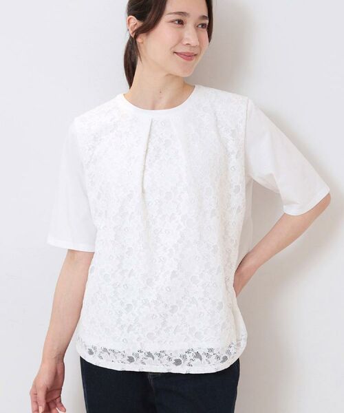 レースモチーフときれい目ジャージをドッキングさせた事で、ドレッシー過ぎず、着易いプルオーバーに仕上げています。