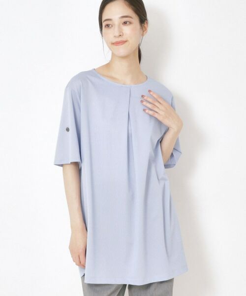 さらりと心地よく快適に過ごせる布帛のようなジャージ素材のチュニックプルオーバーです。