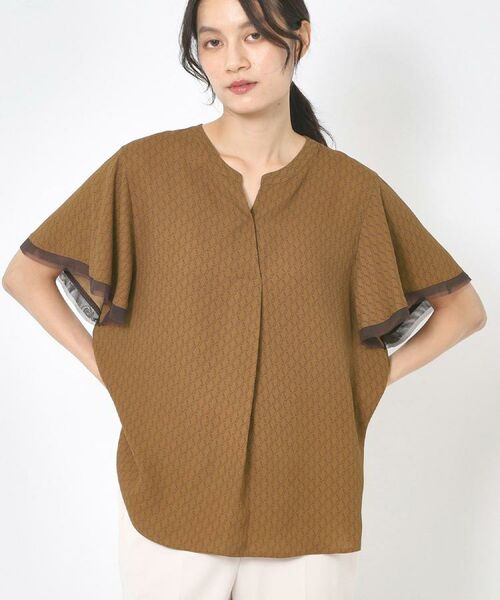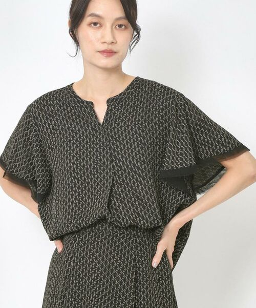袖は肘の隠れるフレアーデザイン。気になる二の腕をさりげなくカバーしつつ動きに合わせてゆれるシルエットが女性らしさを演出します。