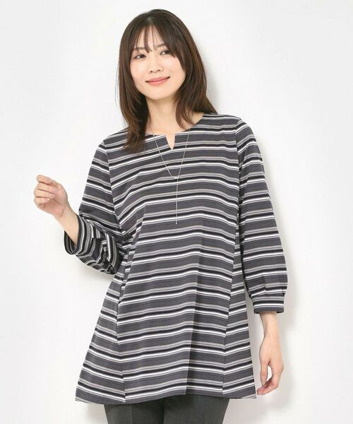 【M~4Lサイズ/洗える】上品に煌めくラメボーダーチュニック
