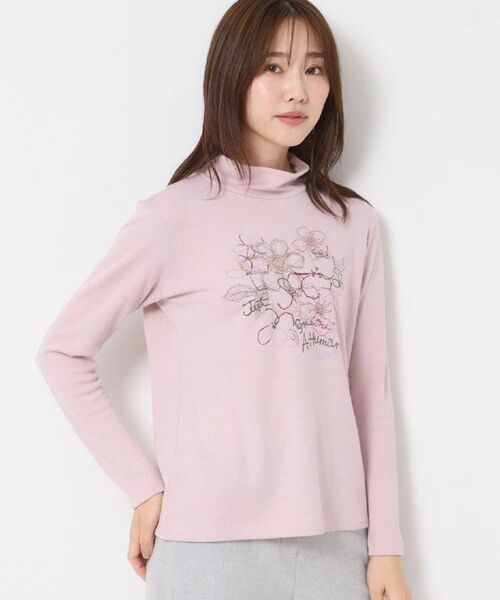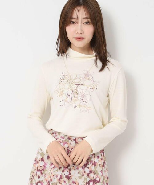 一枚着タイプのハイネックプルオーバーに可愛らしいお花刺繍を施しました。