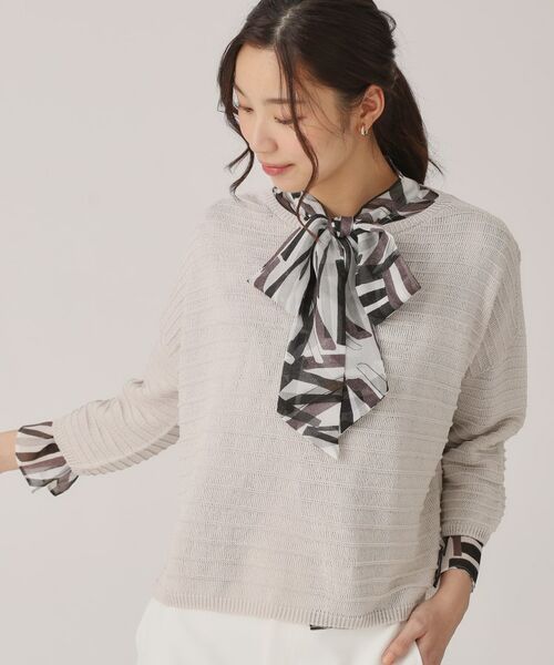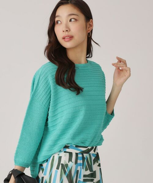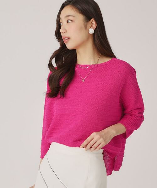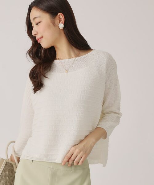 ざっくりした編み柄が印象的な、表情豊かなニットトップス。
