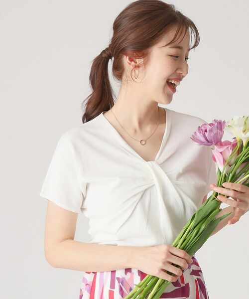 二の腕をさりげなくカバーする長めのフレンチスリーブで、さらっとした肌触りが心地良く、カットソー感覚で気軽にお召しいただけます。