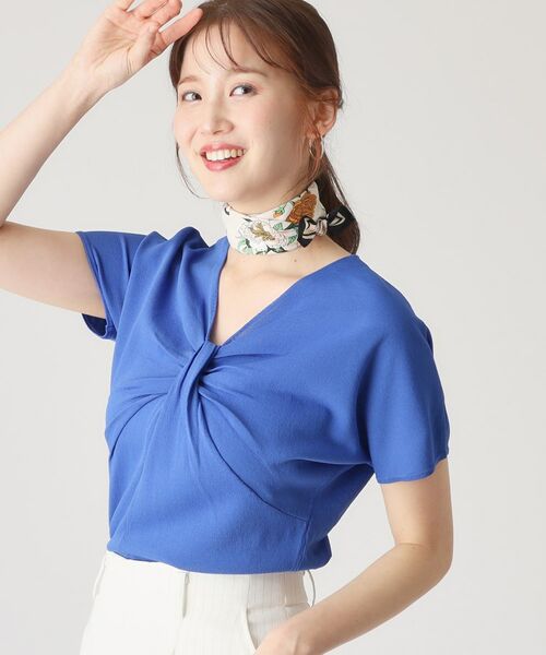 適度なゆとりがありながらも細見え効果が期待できるニットトップスです。
