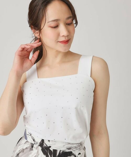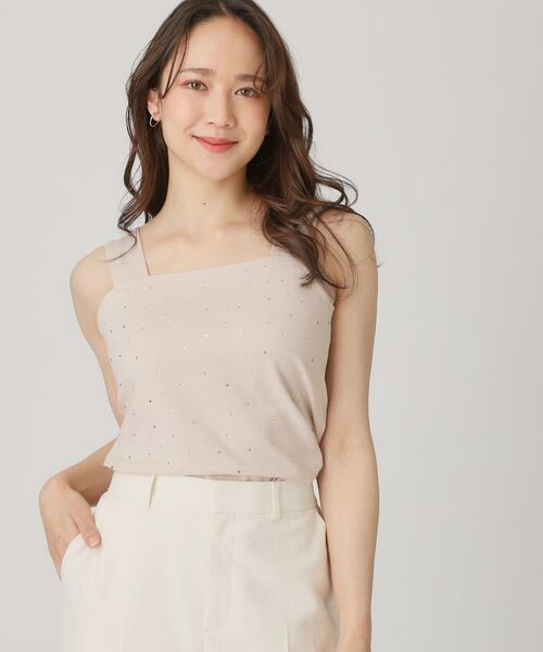 キラキラとしたホットフィットが目を惹くキャミソール。