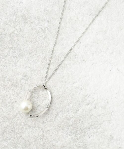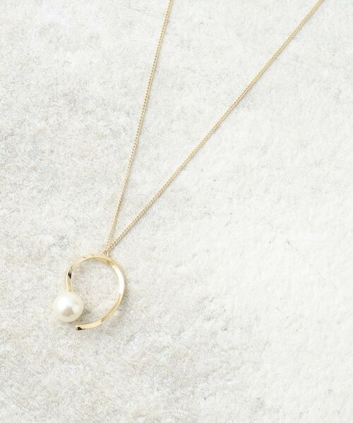 滑らかなカーブを描いたメタルフレームに大粒のフェイクパールがあしらわれ、シンプルながらも存在感のあるワントップネックレス。