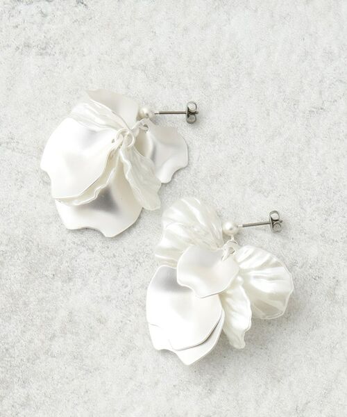 ひらひらと揺れるシルバーピアスはまるで風に舞う花びらのような柔らかい印象を与えます。
