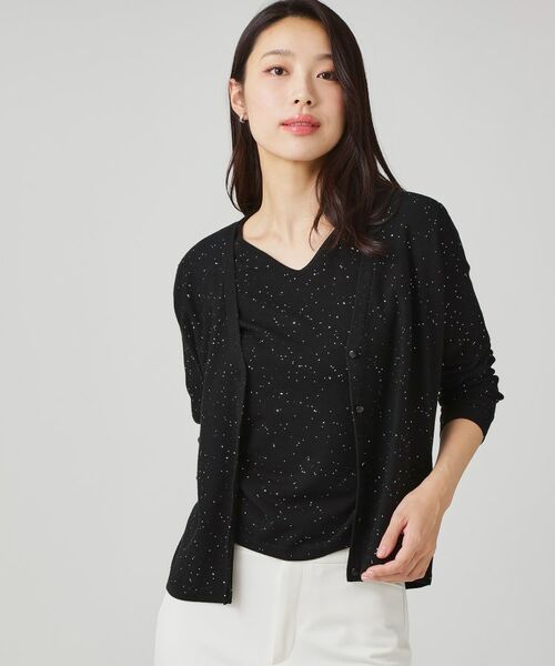 今シーズン注目の「1ミリスパンコール」を贅沢にあしらった、上品で華やかな印象のVネックカーディガン。