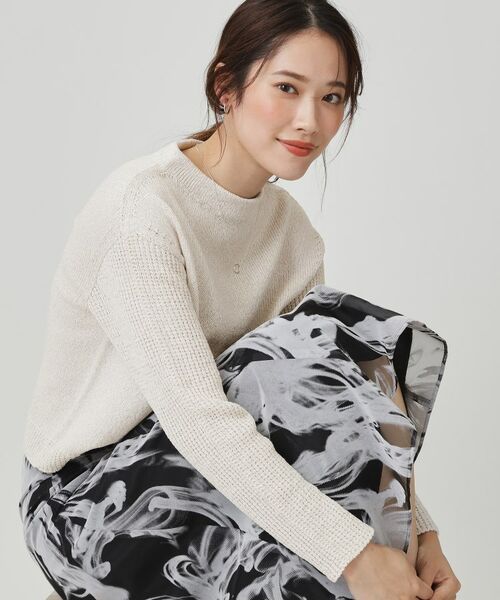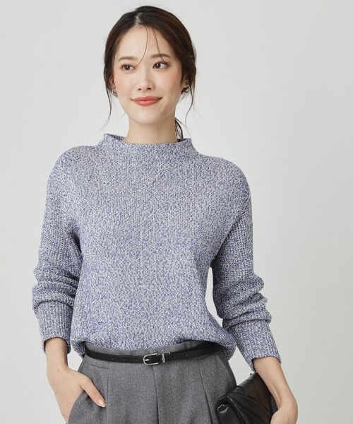 低めのモックネックでニュアンスを出しつつ、詰まって感じないデザインにしています。