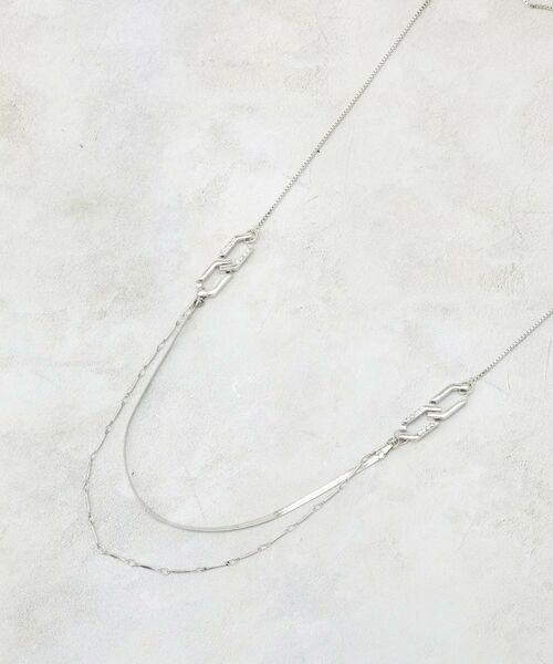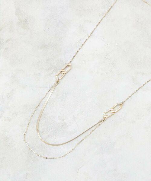 異なるチェーンを組み合わせたデザインで、ひとつ身に着けるだけで重ね付け風のスタイリングが完成。