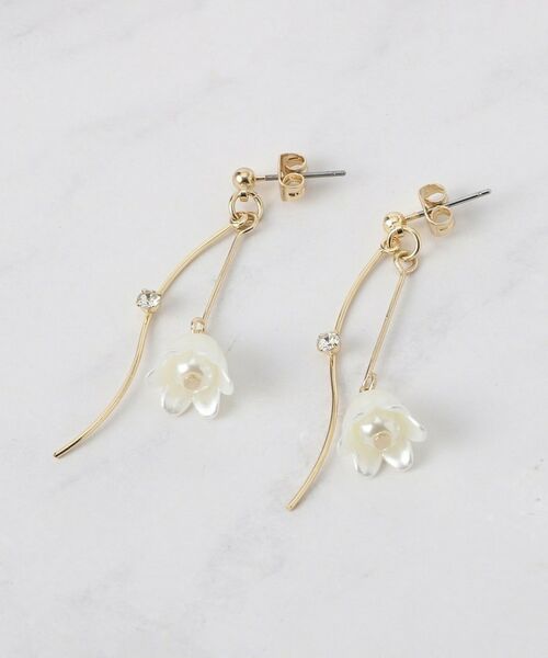 華奢なゴールドパーツとビジュー、リリーモチーフが上品なデザインピアス。