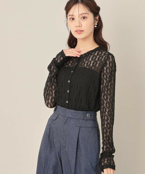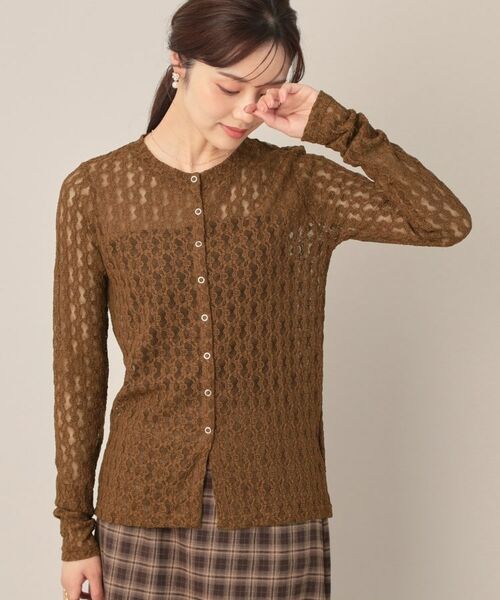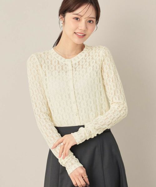 細やかなストレッチ性のあるフラワーレースを使ったデザインカーディガン。