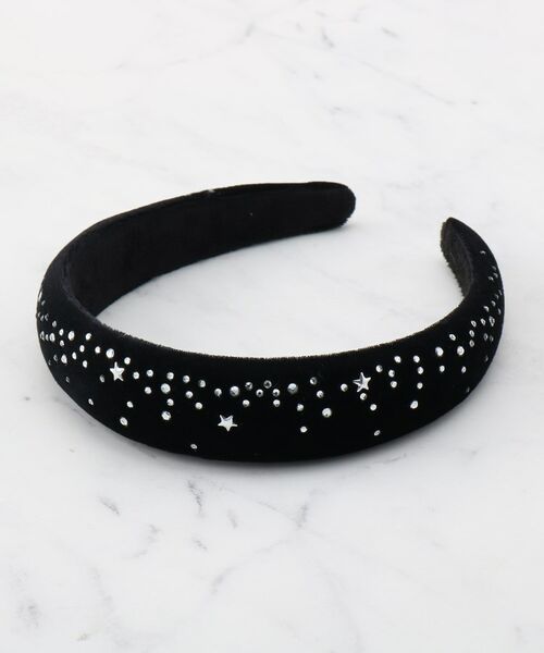 トレンドのベロア素材にスタッズをあしらった、デザインカチューシャ。