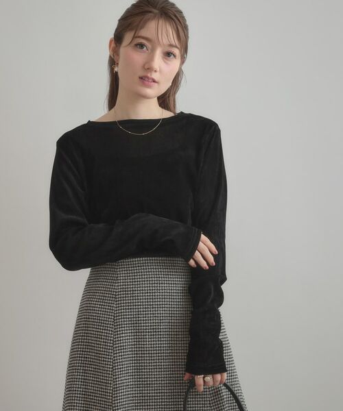 トレンドのベロア素材を使ったデザインプルオーバー。