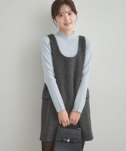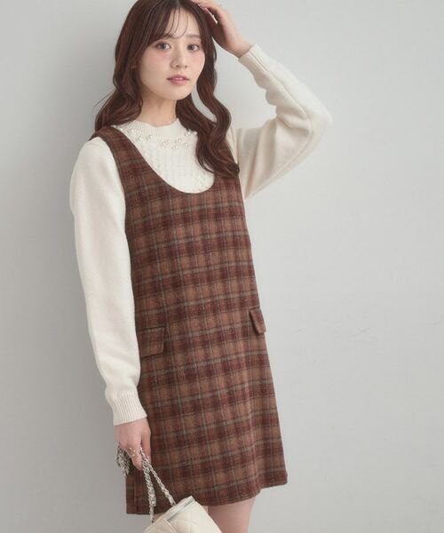 ウールのようなあたたかみのある起毛素材を使用したデザインミニジャンスカ。