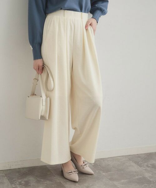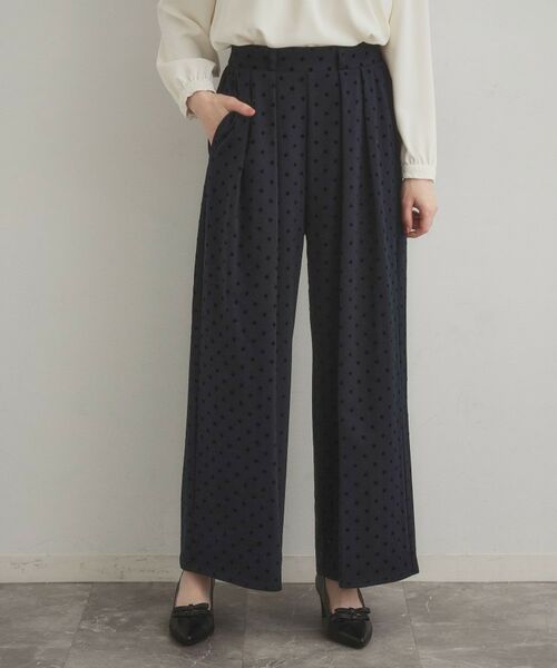 立体的なフロッキードットが上品見えするワイドパンツ。