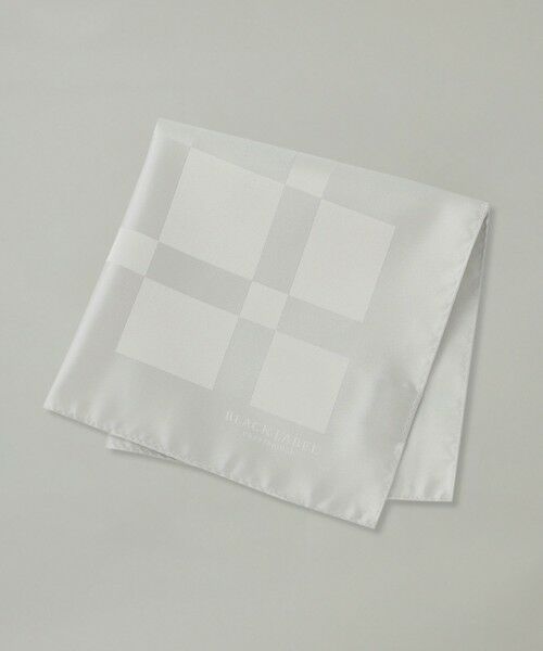 【アイコニックなクレストブリッジチェック柄のチーフ】シンプルなポケットチーフ。ブランドアイコンのクレストブリッジチェックを光沢感のあるサテン組織で織る事でコーディネートを華やかに演出します。上質なシルク100%