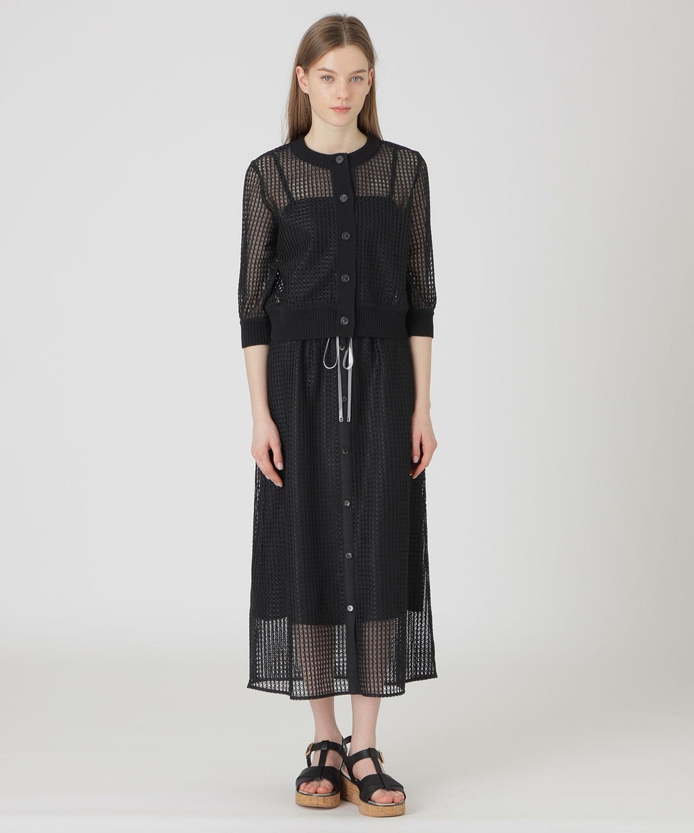 涼しげなメッシュ素材のカーディガン。ドレス等の肩掛けアイテムとしても活躍します。スカートはレースならではの足元の透け感を楽しんでいただけるデザインです。
