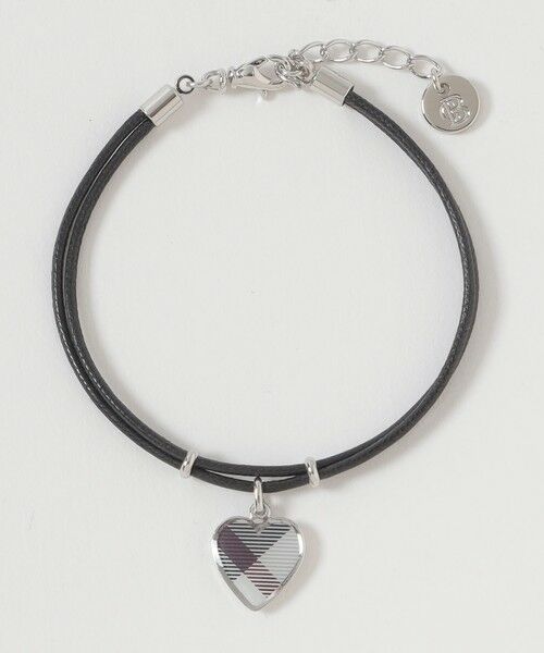 ◆コーディネートのアクセントになるブレスレットどんなシーンでも馴染むシンプルなデザインのコードブレスレットです。メタルにクレストブリッジチェックプリントをし、エポをのせたパーツを使用しています。テールチェーンが付いているので、長さ調節が可能です。