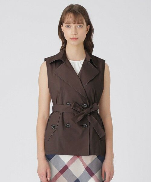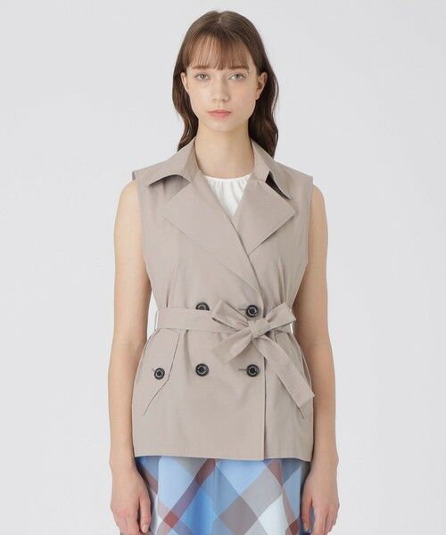 暑い時期の羽織りとして活躍するトレンチコートジレです。