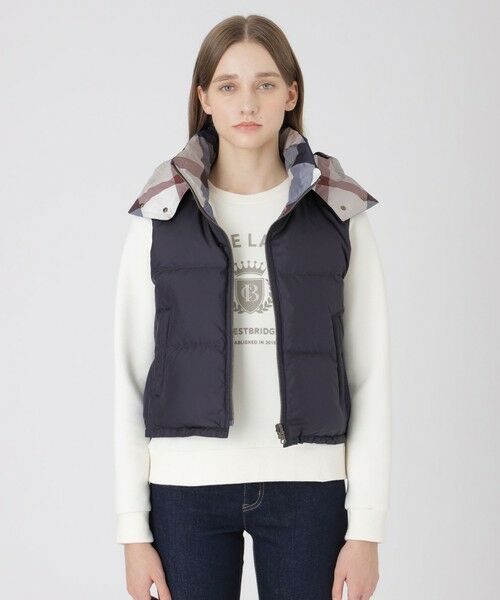 ◆リバーシブルダウンベスト【Design】リバーシブルで楽しんでいただけるダウンベストです。裾のゴムスピンドル仕様でシルエットをお好みに調整いただけます。トレンドのショート丈で、ドレスからパンツ、スカートまでバランス良くスタイリングしていただけます。チェック面を表に着用する際はフードを取り外してください。【Fabric】はっ水加工が施された素材を使用しています。※こちらの商品は、9/22〜9/28でオンラインストアにて開催している10%OFFの対象外アイテムです。
