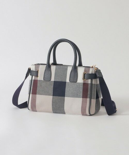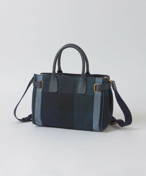 ◆クレストブリッジチェックキャンバス素材のトートバッグ両サイドのハトメとベルトがアクセントのトートバッグです。シルエットが崩れないしっかりとしたフォルムがポイントです。マチが広く、荷物の出し入れも快適に行えます。取り外し可能なショルダーベルトつきの2WAY仕様です。