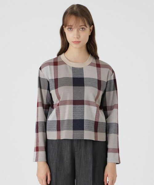 ◆クレストブリッジチェック柄プルオーバー【Design】クレストブリッジチェックが目を引くプルオーバーです。ジャカード織で表現されたチェック柄が、程よい立体感と上品さを演出します。長すぎず短すぎない丈感で、合わせるボトムを選ばないシルエットです。お手持ちのシャツとのレイヤードスタイルもおすすめです。【Styling】ソリッドブロードリボンタイ付きシャツ(55M05618)とのレイヤードスタイルがおすすめです。