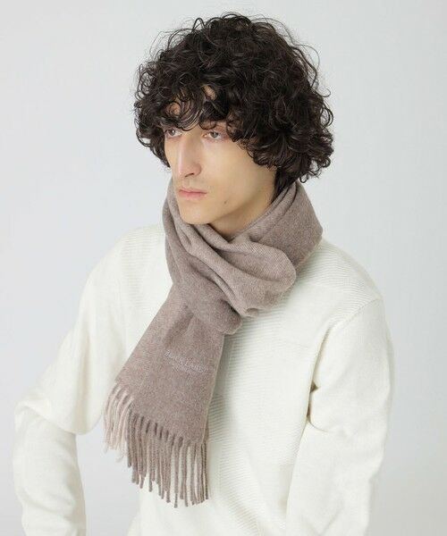 【汎用性抜群のバイカラーソリッドマフラー】ワンポイント刺繍のブランドロゴがアクセントのバイカラーソリッドマフラー。汎用性抜群でギフトにも最適です。温かみのあるウールにカシミヤをブレンドした柔らかい風合いの素材を使用しています。