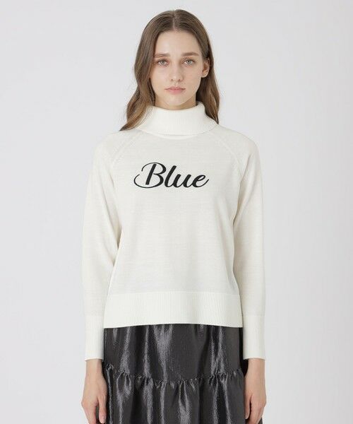 ◆フロントロゴがポイントのニットプルオーバー【Design】フロントのロゴがポイントのニットプルオーバーです。身巾にゆとりがあり、ラフに着られるリラックスしたシルエットです。衿元は、ゆとりのあるややオフぎみのタートルネックに仕上げました。ラグランスリーブがさらにカジュアルな印象を与えるフレッシュなアイテムです。