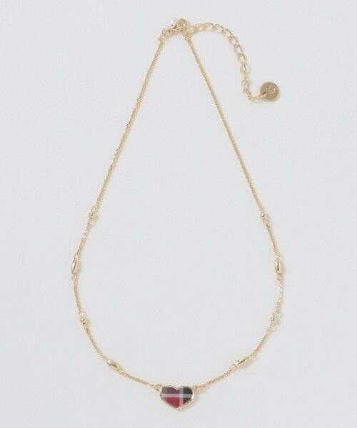 ◆顔回りを華やかにするネックレスキラキラのチェーンが華やかなネックレスです。横長シルエットのクレストブリッジチェックのハートがポイントです。ハートの裏面は凹凸のあるニュアンスハートになっています。細身なので重ね付けにもおすすめです。