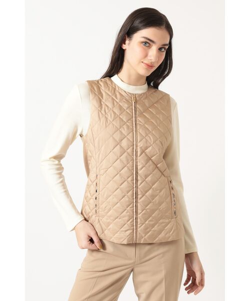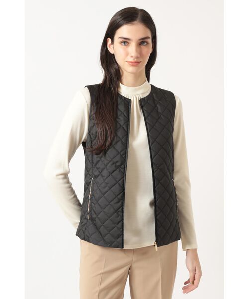 フロントがキルティング、バックがニットになった、暖かくて着用しやすいベストです。秋から初冬にかけては軽めのアウターとして重宝し、本格的な冬にはコートのインナーとして重ね着すれば、薄手のコートでも暖かくお過ごしいただけます。今季はポケット口にDAKSのハウスチェックをさりげなく覗かせ、細部にもこだわりが光る便利なアイテムです。