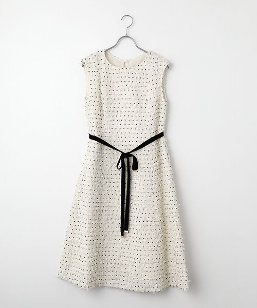 ツイードが高見えするキレイめノースリーブワンピース。