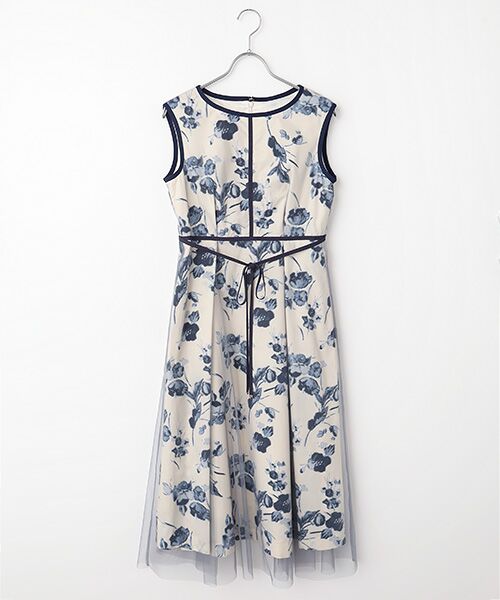 「素敵」が叶うアートなワンピース♡■デザイン大胆でアートフルな花柄プリントが目を引くワンピース。ウエストリボンのアクセントで脚長なスタイルアップも後押し。首元をすっきり見せるネックラインで重ね着も素敵に着映えます。■スタイリングおよばれにはカーディガンやジャケットなどきれいめな羽織りをプラスするスタイリングがおすすめ。■素材水彩画のような滲みのあるタッチが特徴。やわらかく濃淡のあるブルーの花模様が大人のエレガンスを演出しています。
