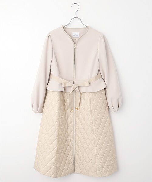 <スカート部分>不動の人気で王道のダイヤキルト素材。中綿は程よい厚みで保温性のある60gを使用しています。軽くて丈夫で、ふんわりとした優しい肌触りに仕上がっています。