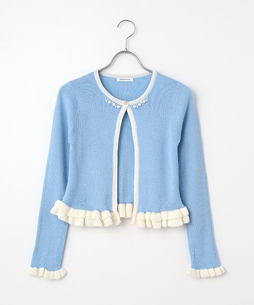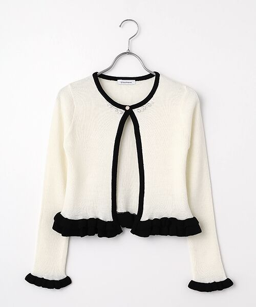 清楚なフェミニンスタイルが叶う万能カーディガン♡■デザインさりげないフレアスリーブがフェミニンなカーディガン。衿元・前たて・袖口の配色ラインがポイントです。パール釦が上品で華やかな印象にしてくれます。■スタイリングワンピースはもちろん、ハイウエストのボトムスと合わせてもバランスよくまとまります。Tシャツの上に羽織ったり、ボタンを閉じてトップス風にも。1枚で何通りもの着こなしが楽しめる万能アイテムです。■素材細めのリブ編みニット。身体にフィットしながら優しく馴染むやわらかさです。