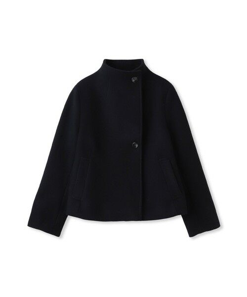 身頃と一体になったスタンドカラーが特徴で、開けたときにも美しいラインを保ち、華やかで上品な印象に仕上げています。