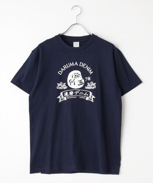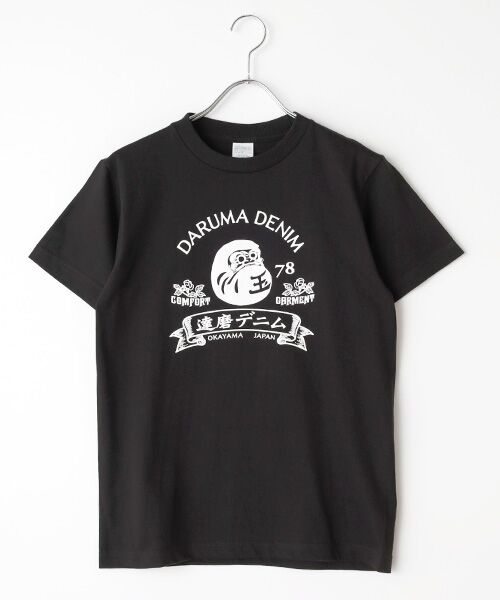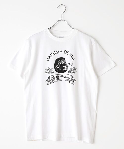 達磨デニムのクラッシックデザインを胸にプリントしたTシャツです、ブランドのアイコンとなる1枚