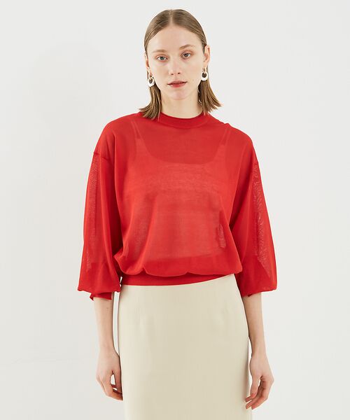 衿元のRIBは二重仕立てに。袖口のギャザーもポイントです。