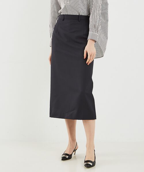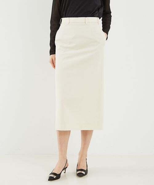ストレートシルエットのロングスカート。オフィスやお出かけの日はもちろん、Tシャツやニットと合わせればカジュアルにも着こなせる万能スカートです。オフホワイト モデル:H178 B81 W59 H89 着用サイズ:38ネイビー モデル:H178 B81 W59 H89 着用サイズ:38