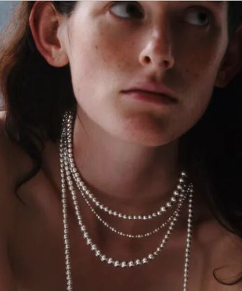 大小のシルバーボールをリズミカルに配置したロングネックレス。