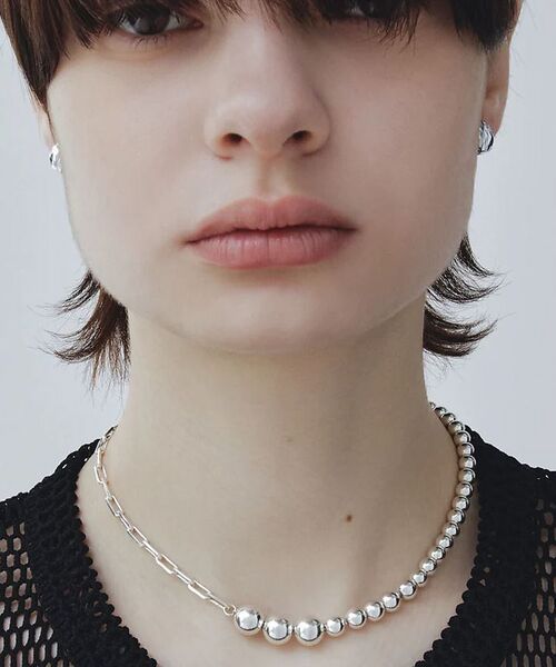シルバーボールとチェーンを合わせたアシンメトリーネックレス。