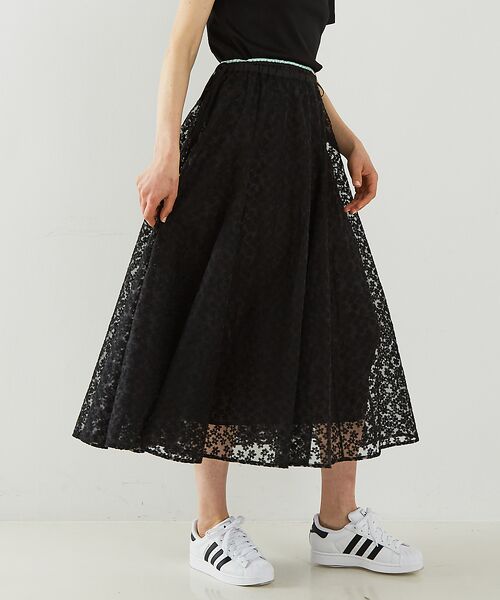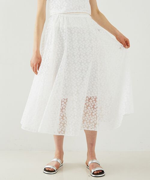繊細な刺繍を全面に施した、シアーな表情のレース素材。