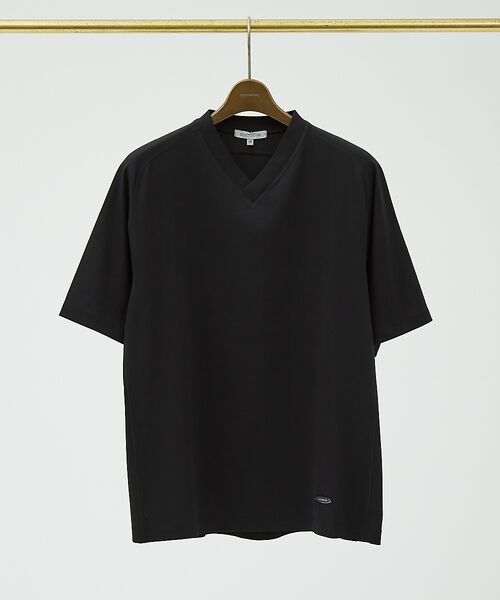 【素材】ハイゲージ&シルケット加工による、光沢感のある素材。程よいストレッチ感があり、着心地も抜群です。【デザイン】機動性を考え、スッキリした高めのラグラン切り替えデザインのハンマースリーブと脇から袖下を一枚にした変形ピポットスリーブが特徴のVネックTシャツ。首元のVネックは浅めで汎用性を高めました。裾はヴィンテージに見られる天地始末ですっきりとした仕上がりに。オリジナルのプレートを左裾に配置し、シンプルながらさりげないロゴ入り特殊メッキがモード感を高めています。【コーディネート】一枚着としての着用やジャケットのインナーなどきれいめなスタイルがおすすめです。同素材ヘンリーネックTシャツ(03500921004)もあり。ホワイト モデル:H185 B92 W79 H92 着用サイズ:48