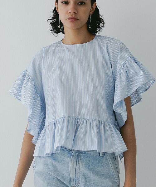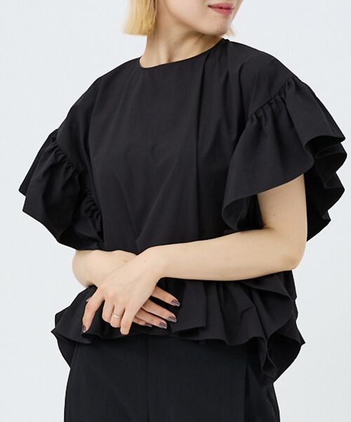 ぐるりと一周ラッフルをあしらった華やかなポンチョ風トップス。