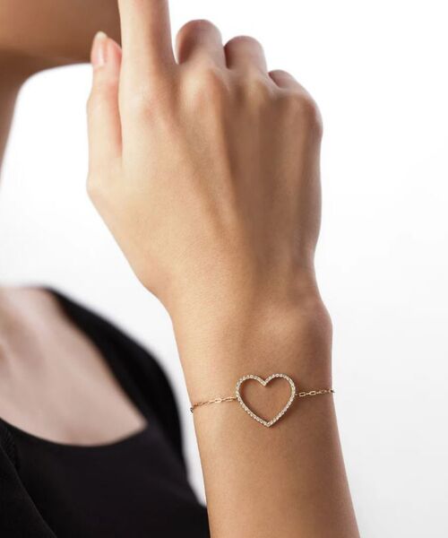 お守りのように肌身離さず身につけられるブレスレット。英語で「思いやりのある心」を意味する、Heart of Gold(ゴールドのハート)、そしてハートを取り囲むダイヤモンドの石言葉は、「永遠の絆」。大切なご友人や、愛するパートナーへの贈り物にもぴったりのアイテムです。※アジャスター付きなので簡単に長さを調節することができます。