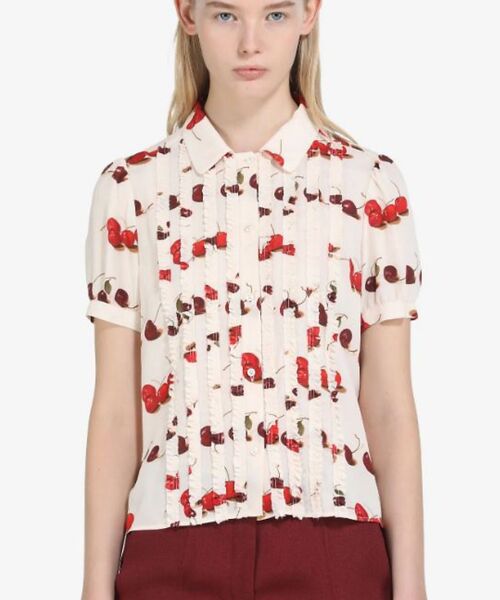 クラシカルなムードに遊び心を添える、チェリープリントが印象的な半袖シャツ。