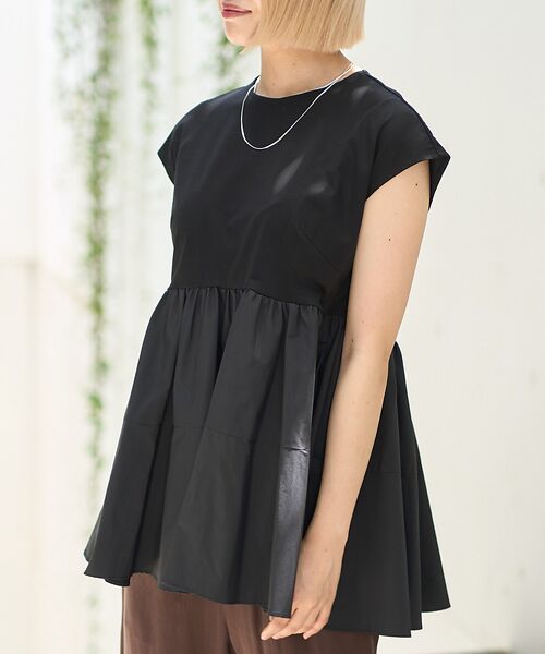 気になるウエストまわりをふんわりとカバーしてくれるペプラムデザイン。