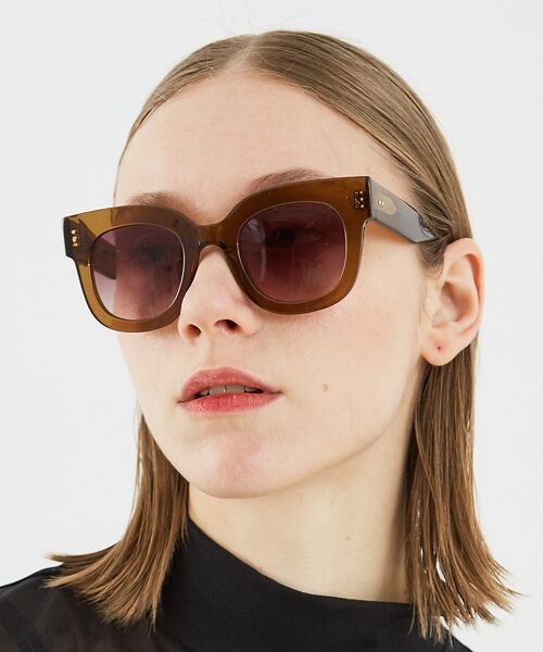 小ぶりながらも太めのフレームで、存在感抜群のサングラス。