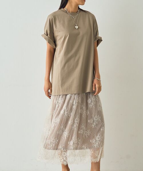 華やかなレーススカートのコンビネーションが新鮮な一着。