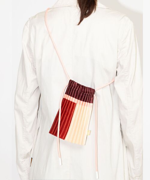 調整可能なショルダーストラップとドローストリング(絞り紐)で閉じることができます。